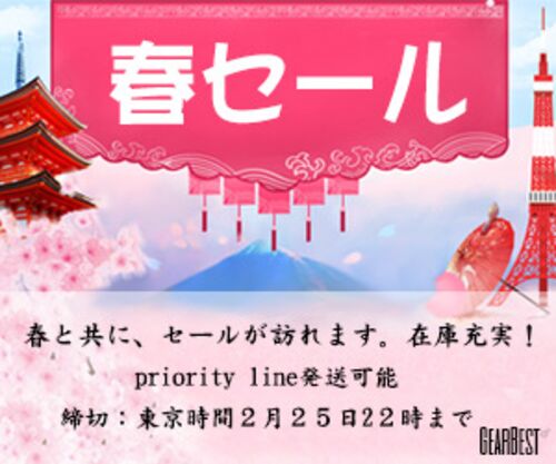 春セール - GearBest.com (*´∀`)ご覧の記事はGEARBEST(ギアベスト)の提供でお送りします! (*´∀`)日本の春の祭りって言えば、モチのロンで山崎春のパンまつり! (*´∀`)えっ?ひなまつり?…。へ〜、そんなまつりあるんだ…。 (*´∀`)…、話は変わって、GEARB…
